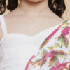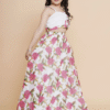 Off White & Pink Georgette Floral Printed Choli, Has A One Shoulder Neck With Short Sleeves With Pink Floral Printed Georgette Lehenga With Lining.